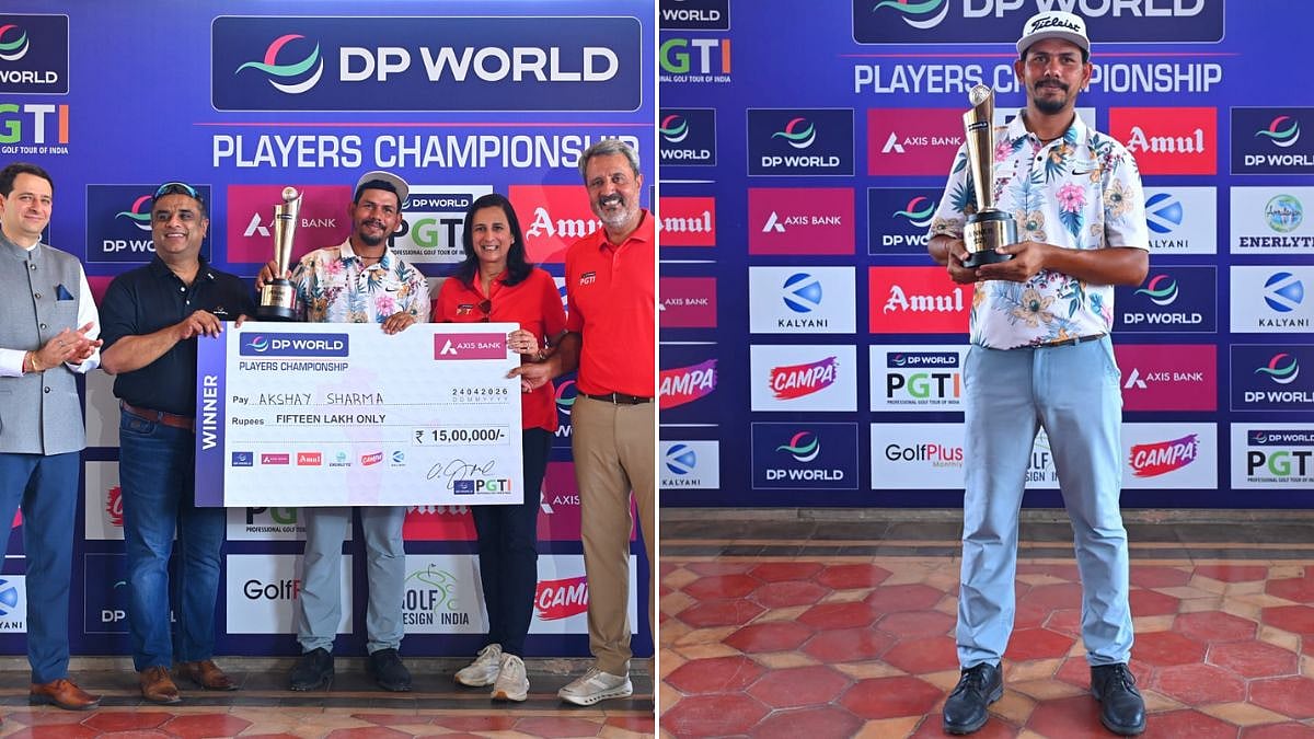 Nuh, Haryana, April 24: Akshay Sharma carded an error-free eight-under 64 to claim his third DP World PGTI title at the INR 1 crore DP World Players Championship played at the Classic Golf & Country Club in Nuh, Haryana.