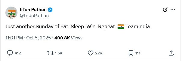 Former India all-rounder Irfan Pathan took a silent jibe at Pakistan after India's 88-run win in the Women's ODI World Cup on Sunday, October 5th. Taking to social media platform X (formerly Twitter), Pathan wrote, “Just another Sunday of Eat. Sleep. Win. Repeat. Team India.”