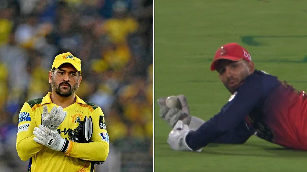 RCB registered a comprehensive win over arch-rivals CSK in a blockbuster clash at the M Chinnaswamy Stadium. During RCB's 43-run victory, wicketkeeper Jitesh Sharma took a diving one handed catch to dismiss the dangerous Shivam Dube. With MS Dhoni not playing due to injury, RCB took the opportunity to take a dig at the ex-India captain.