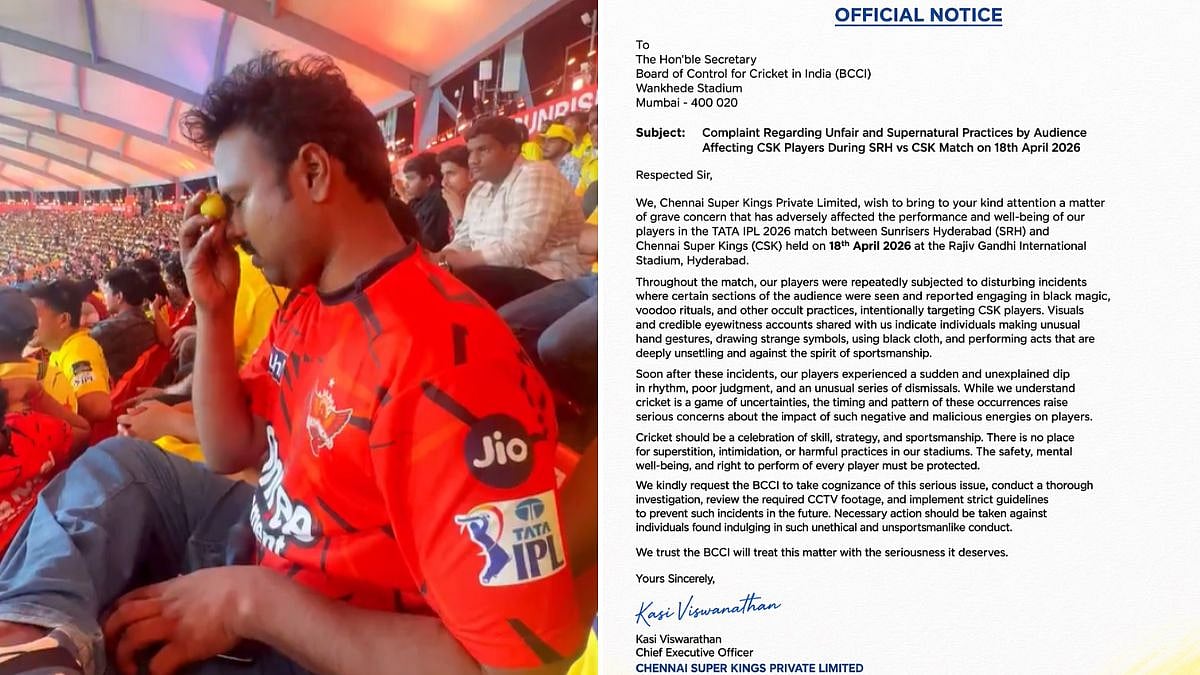 "Throughout the match, our players were repeatedly subjected to disturbing incidents where certain sections of the audience were seen and reported engaging in black magic, voodoo rituals, and other occult practices, intentionally targeting CSK players. Visuals and credible eyewitness accounts shared with us indicate individuals making unusual hand gestures, drawing strange symbols, using black cloth, and performing acts that are deeply unsettling and against the spirit of sportsmanship," the post claimed.
