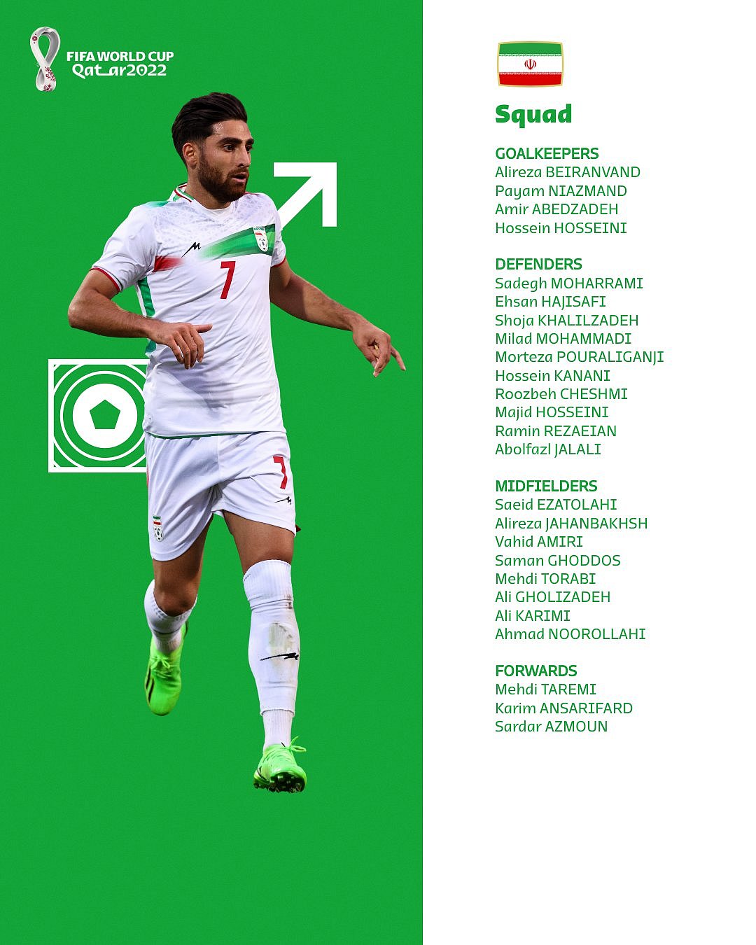 Striker Sardar Azmoun is another important player with his 52 goals in 79 appearances for Zenit Saint Petersburg, and the now Bayer Leverkusen forward can be expected to lead the line in Qatar.