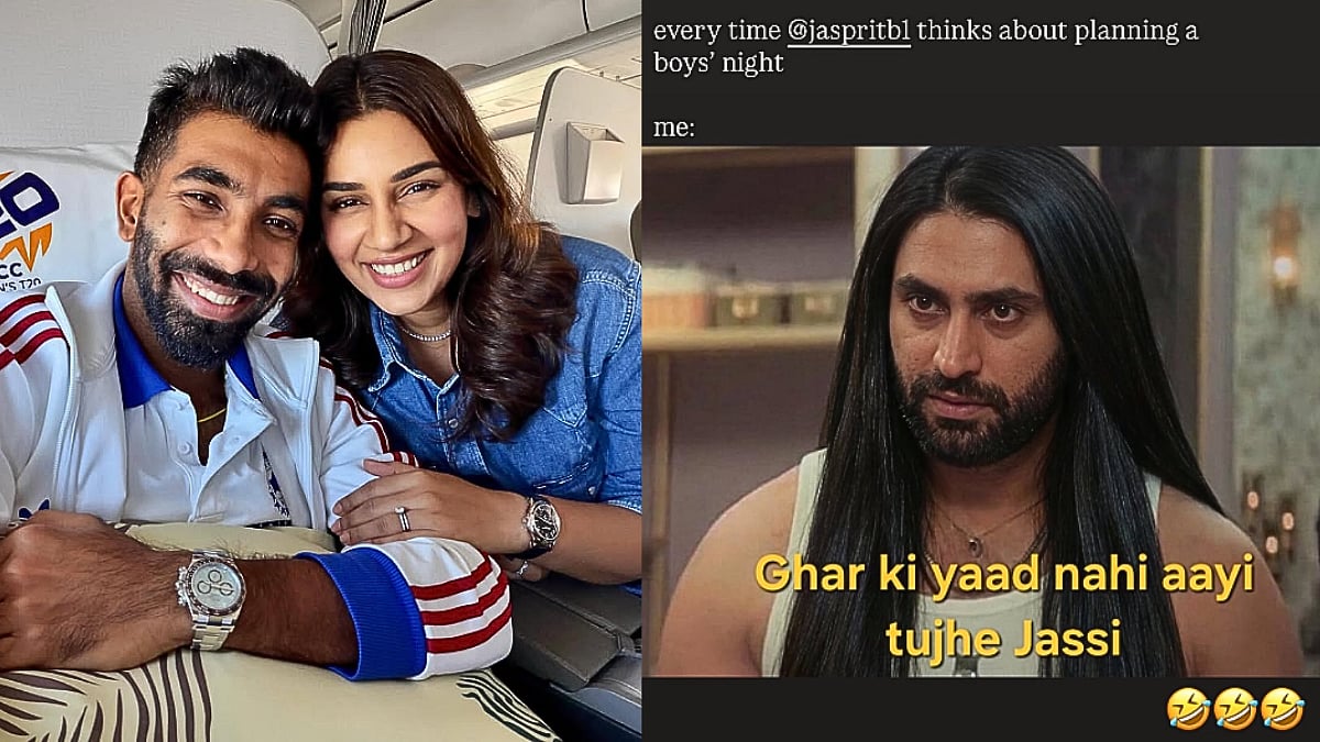 In her post, Sanjana shared an image with the caption: “Every time Jasprit thinks about planning a boys’ night” followed by the legendary Dhurandhar line “Me: Ghar ki yaad nahi aayi tujhe, Jassi?” poking fun at the idea that her husband might be tempted to step out for another boys’ night but then gets playfully reminded to stick close to home. The post quickly drew laughter and reactions from fans.