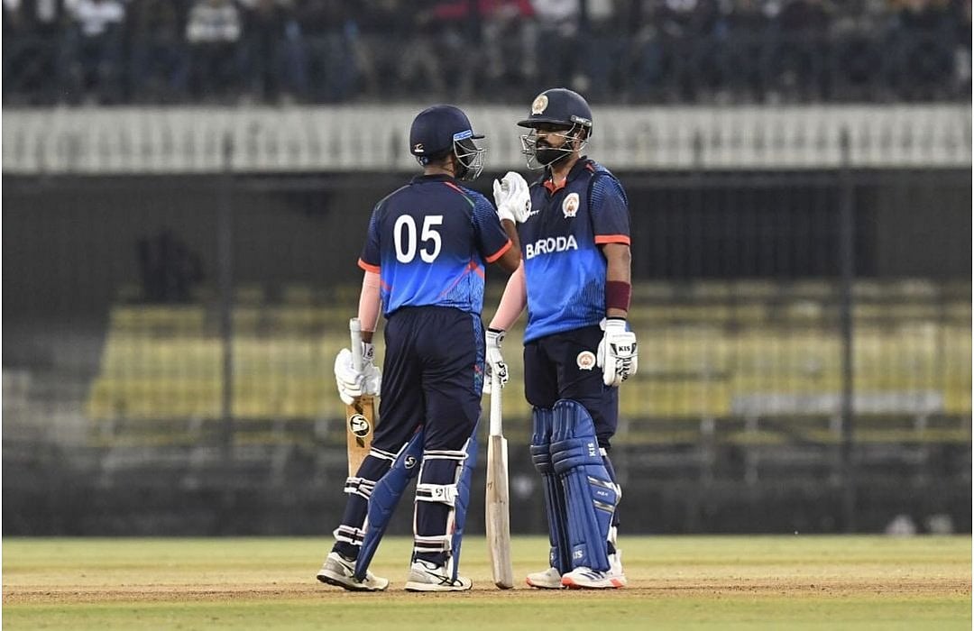 With Baroda winning the toss and electing to bat first at the Emerald Heights International School Ground in Indore, they went hammer and tongs from the outset. Abhimanyu Singh and Shashwat Rawat hammered 53 off 17 deliveries and 43 off 16 balls, respectively. Later, Pania took control of the innings as he stayed unbeaten on 134 off 51 deliveries.