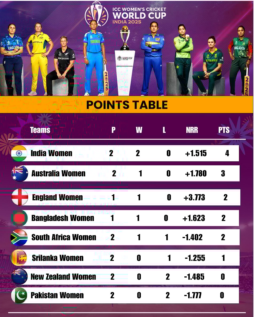 The ICC Women’s World Cup 2025 continues to be a celebration of women’s cricket, providing fans with high-quality action and highlighting the growing talent pool across participating nations. Stay tuned as the tournament unfolds, with every match bringing fresh excitement and shaping the journey to the knockout stages.