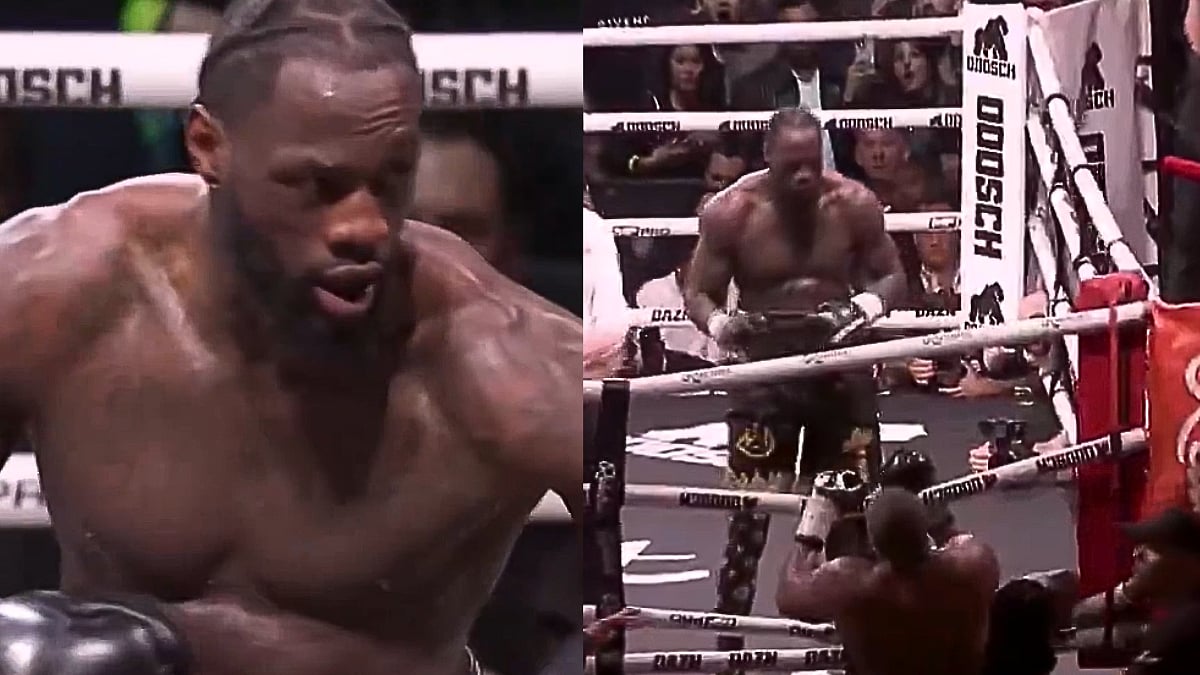 A dramatic and emotionally charged moment from the heavyweight clash between Deontay Wilder and Derek Chisora has taken social media by storm, blending raw boxing intensity with unexpected theatrics.