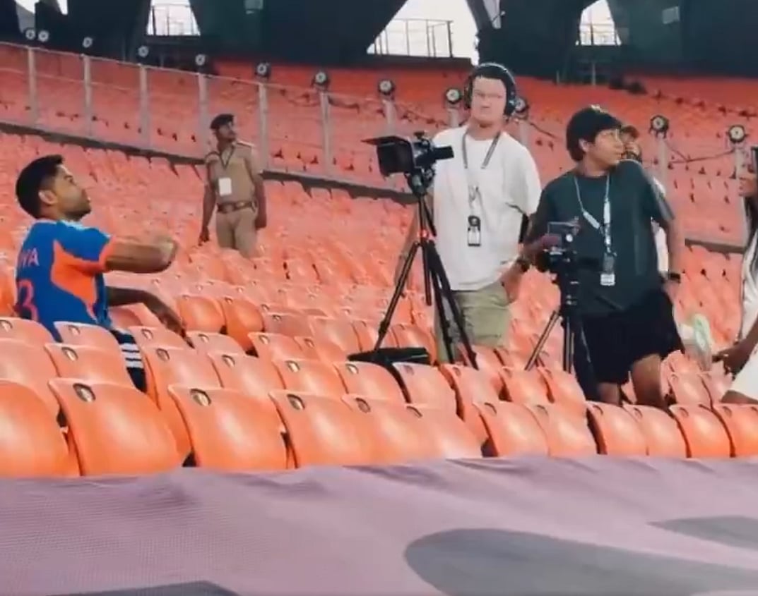 A brief moment of alertness from India captain Suryakumar Yadav prevented a potential mishap during a media interaction at the iconic Narendra Modi Stadium ahead of the IND vs NZ ICC T20 World Cup 2026 Final.