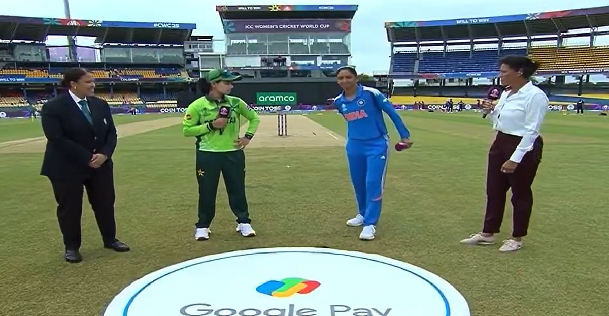 The match referee and presenter during the toss for the Women's World Cup match between India and Pakistan seemingly erred by calling it in favour of Fatima Sana. Although Sana had seemingly called tails and it came heads, the match referee had ruled it in favour of Pakistan. A video of the same has surfaced on social media.