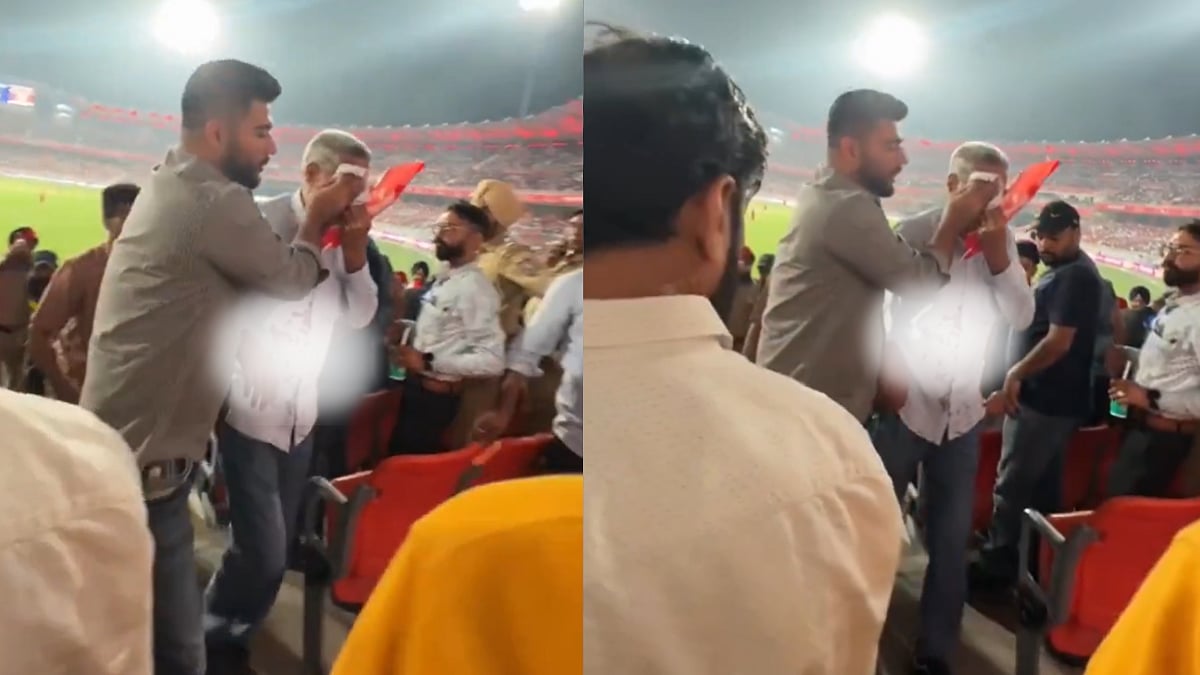 According to reports, the fan sustained an eye injury while watching the game involving Punjab Kings. The incident caused panic among nearby spectators, with visuals showing the elderly man bleeding heavily from his face as concerned fans quickly gathered around him. His shirt was reportedly stained with blood, highlighting the severity of the injury.