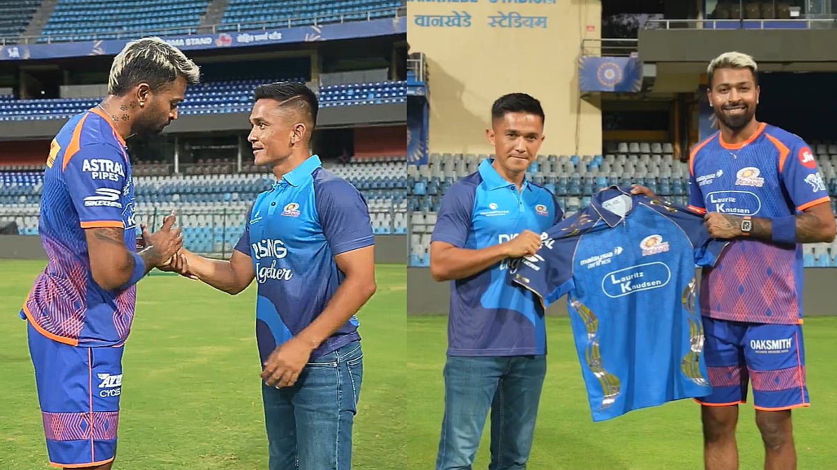 Indian football icon Sunil Chhetri made a memorable appearance at the Mumbai Indians training session at the iconic Wankhede Stadium, creating a unique crossover moment between football and cricket.