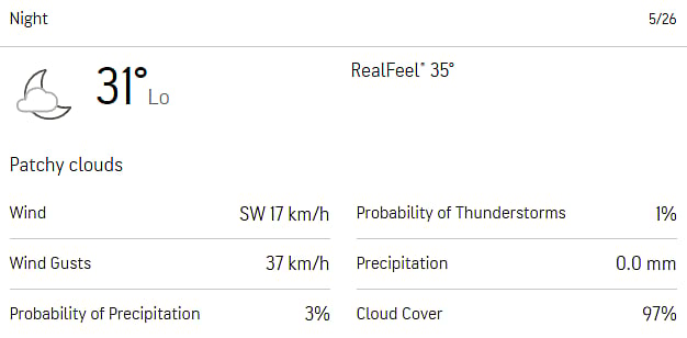 Since the IPL 2024 Final will be taking place in the night, the temperature in Chennai is expected to hover around 31 degrees Celsius, as per Accuweather.