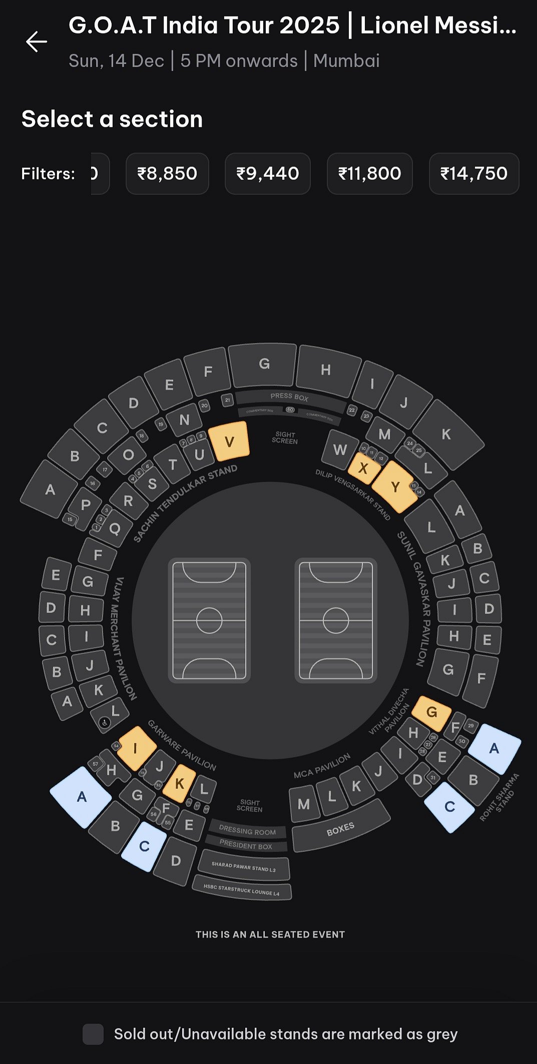 The newly opened ticket slots have eased some of the frustration among supporters, many of whom struggled to secure seats when the first phase of sales sold out within minutes. These additional tickets are now available across multiple categories, catering to a broader segment of fans eager to witness Messi live. The price range for the December 14 event extends from ₹7670 to ₹14750, offering various options depending on seating preference and viewing experience.