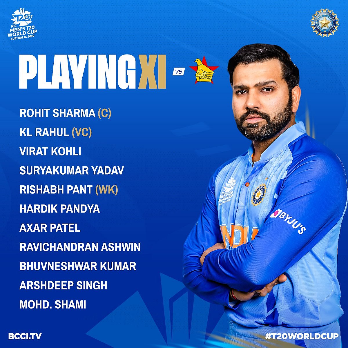 India skipper Rohit Sharma won the toss and opted to bat against Zimbabwe. Rishabh Pant comes in place of Dinsesh Karthik