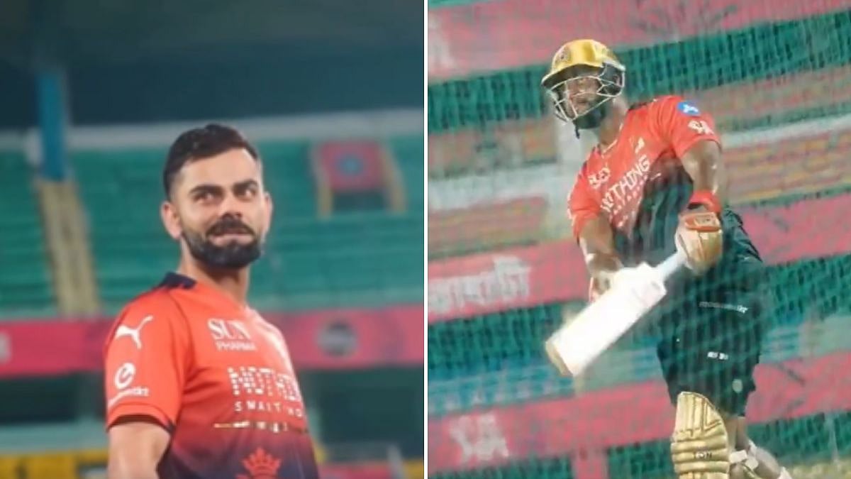 RCB star Virat Kohli was at his hilarious best in Guwahati ahead of the game against Rajasthan Royals. During training, Romario Shepherd hit a towering six, hitting the dressing room window. Kohli, who was watching from the side, taunted Shepherd in a hilarious Caribbean accent, suggesting his hit wasn't long enough.
