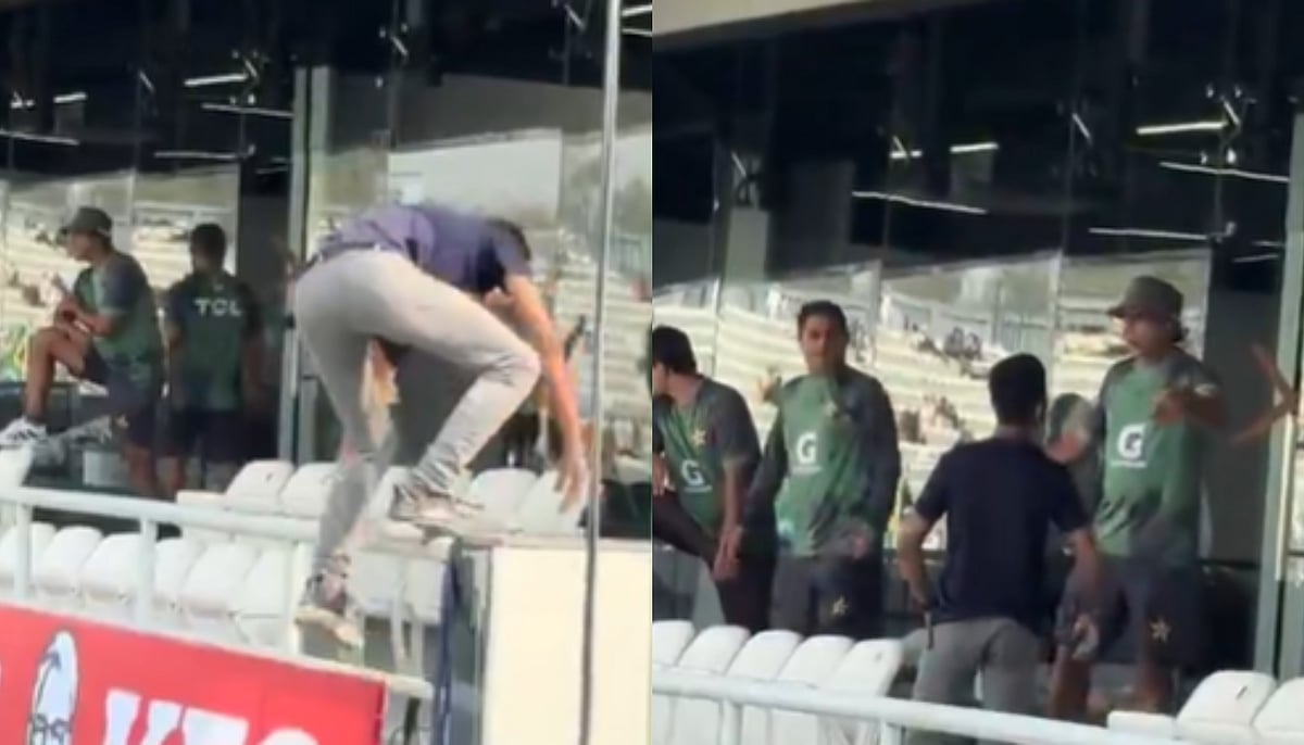 A fan stunningly climbed over to Pakistan's dressing room balcony area on Day 4 of the first Test against South Africa at the Gaddafi Stadium in Lahore. A video of the same has gone viral on social media as the coaching staff, including Azhar Mahmood were taken aback, with a couple of security staff escorting him out.