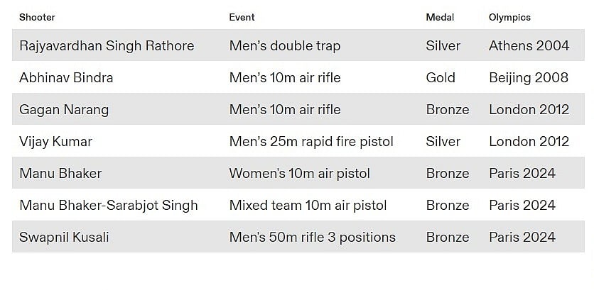 Medals in shooting since 2004