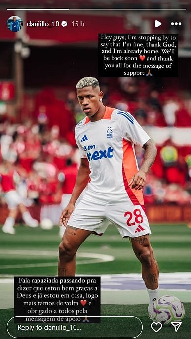 The Brazilian was treated on the pitch by medical staff of Nottingham Forest. The members of the response team created a protective barrier around him. Fans and players were relieved to see Danilo giving a thumbs up while he was carried out of the field.