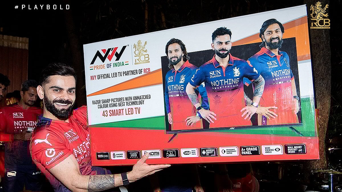 RCB shared the update on Virat Kohli getting the LED TV on its official social media platform and said, "Pressure up. King Kohli shows up. A brilliant 81, featuring 8 fours and 4 sixes, along with a 100-plus stand with DDP, makes Virat Kohli the NVY TV Top Performer of the Match."