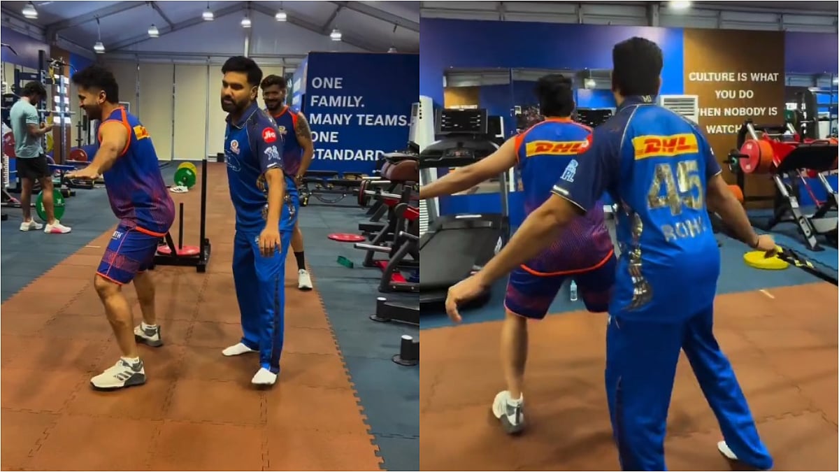 Mumbai, April 27: Mumbai Indians star opener Rohit Sharma was caught on camera imitating his teammate Shardul Thakur while working out at the gym. The video of Rohit Sharma joking with Shardul is being widely shared on social media and the video is going viral on the internet. The internet users are enjoying Rohit's hilarious act in the viral video.