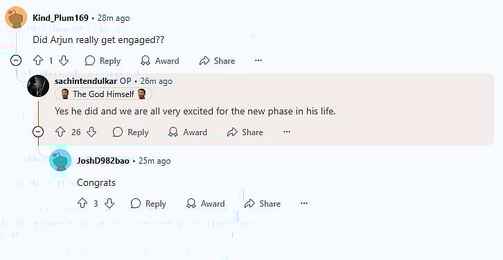 In a sweet and candid moment that sent fans into celebration mode, cricket legend Sachin Tendulkar confirmed that his son, Arjun Tendulkar, is officially engaged. The revelation came during a Q&A session on Reddit, where a curious fan asked, “Did Arjun really get engaged?” To this, Sachin replied with warmth and pride, “Yes he did and we are all very excited for the new phase in his life.”