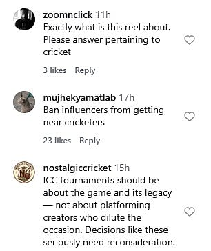 Some went further, suggesting influencers should not be allowed close access to players during international matches. "Exactly what is this reel about. Please answer pertaining to cricket," wrote another user. "Ban influencers from getting near cricketers," wrote another user.