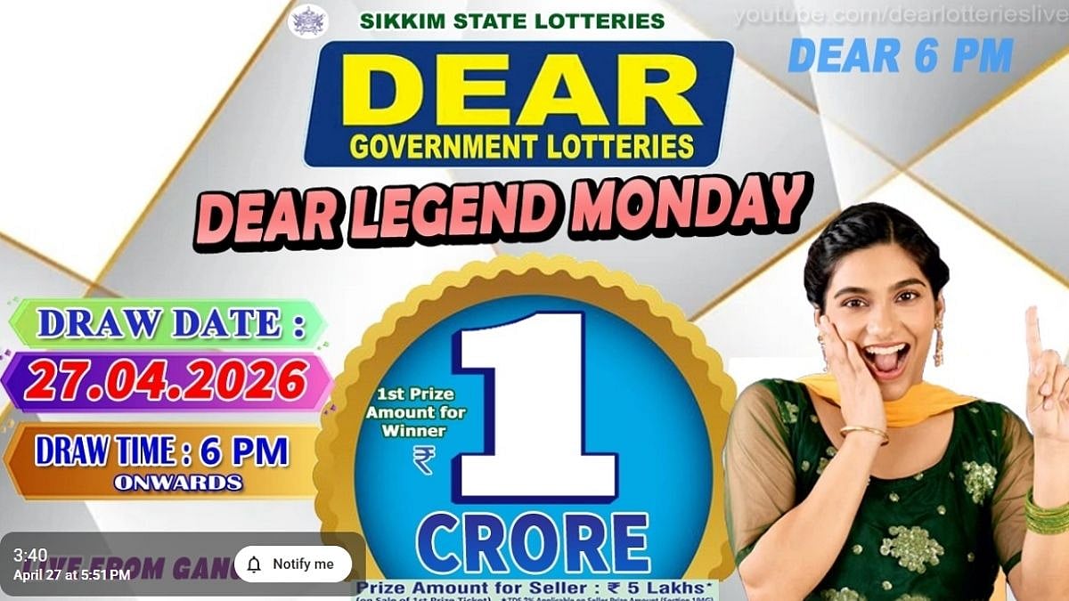 Sikkim State Lottery Results announced today, The Dear Legend Monday Weekly Lottery results will be declared at 6 PM on April 27, 2026. The first prize winner will receive ₹1 crore. Stay tuned as we update the complete winners list. If you bought a ticket, check the results here to see if you are among the lucky winners.