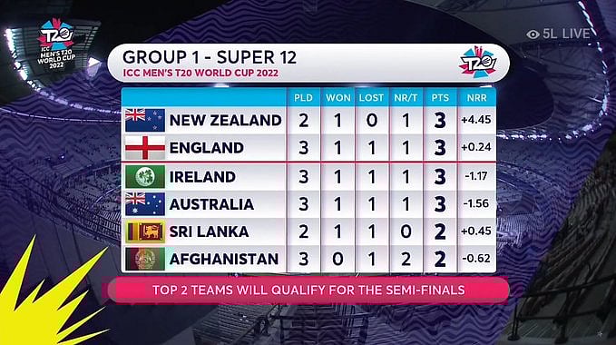 The next match from Group 1 will be played between New Zealand and Sri Lanka on Saturday at the Sydney Cricket Ground, with the winner of the clash having a chance to be on top of Group 1.