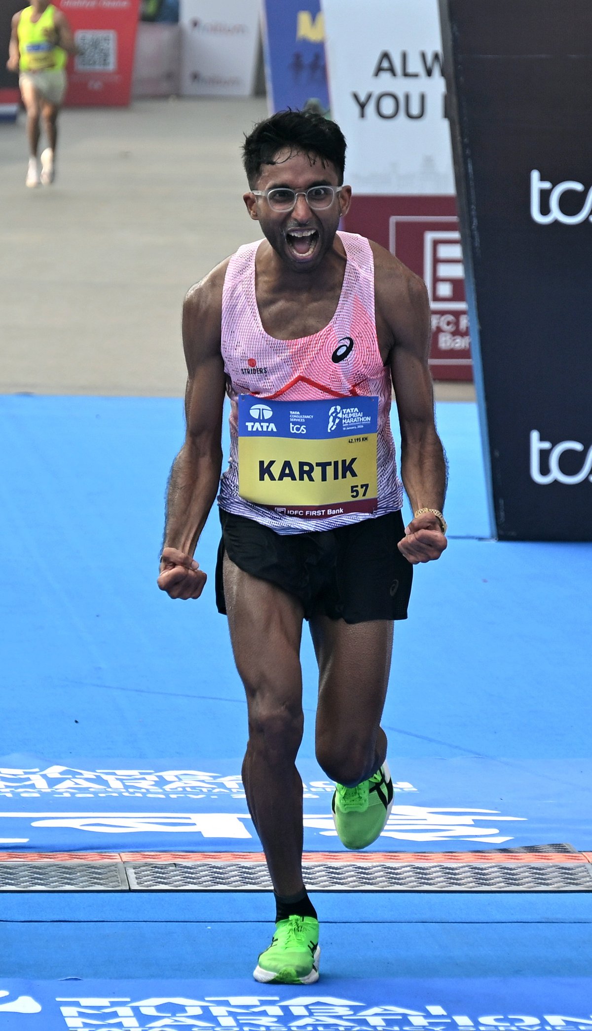 Kartik won the Indian Elite Men's Marathon with a timing of 2:19.55 ahead of xx