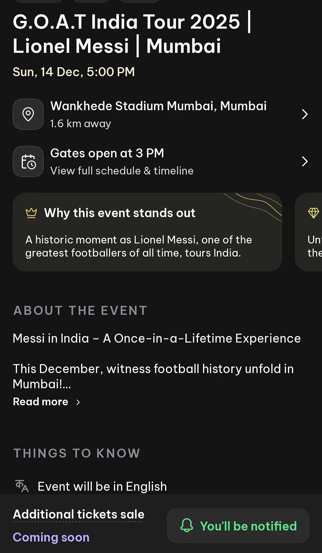 Fans can book their tickets through district.in or by downloading the District App on their smartphones. This is the only verified and authorised ticketing partner for the Lionel Messi Mumbai event.