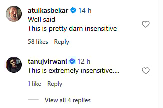 Among the most vocal critics was renowned photographer Atul Kasbekar, who commented, “Well said. This is pretty darn insensitive,” expressing concern over the campaign’s tone and intent. Actor Tanuj Virwani also weighed in, stating, “This is extremely insensitive….” Their reactions amplified the ongoing debate around ethical boundaries in advertising.