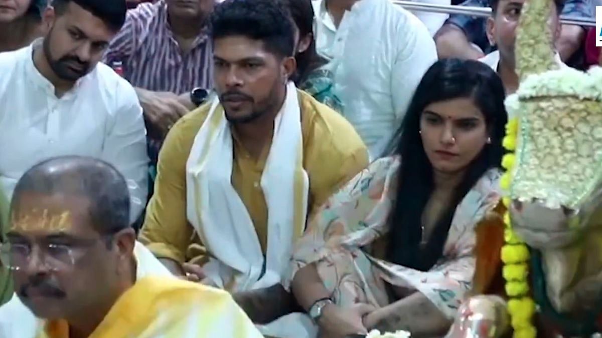 Ujjain: Indian pacer Umesh Yadav visited the iconic Mahakaleshwar Temple with his wife Tanya Wadhwa on Friday morning, where the couple attended the Bhasma Aarti.