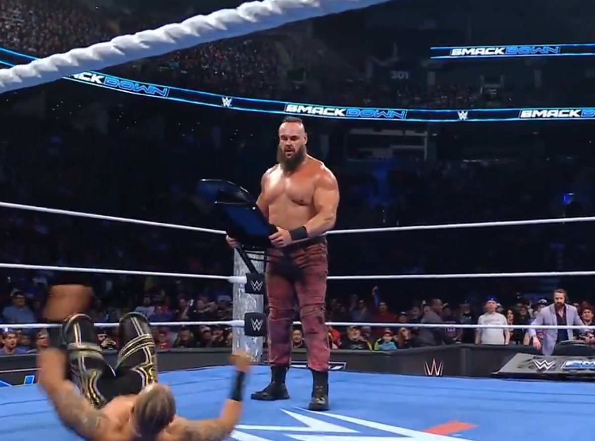 Carmelo Hayes pulled off an Eddie Guerrero-like trick to con the referee in the latest episode of SmackDown during his bout with Braun Strowman. In the video surfaced on social media, Hayes struck the steel chair on the ground and made it look to the referee like Strowman had hit him with the same.