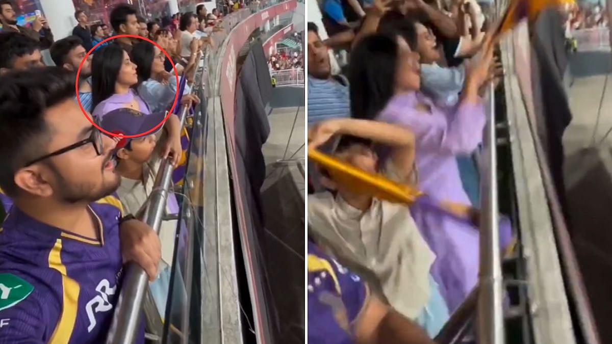 Priya can be seen jumping in joy after her fiancée hit the winning runs. She then waved KKR's Purple and Gold flag proudly, with the KKR fans also celebrating.