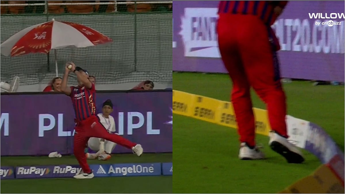 Priyansh Arya was batting on 93 when he played a lofted shot in the long-off region. The ball was flying into the stands, however, it found Mitchell Marsh in the way and he grabbed a stunner on boundary line and his leg was just inches away from the cushion. The decision was referred to the third umpire, who gave him out after it was confirmed from the replay that it was a clean catch.