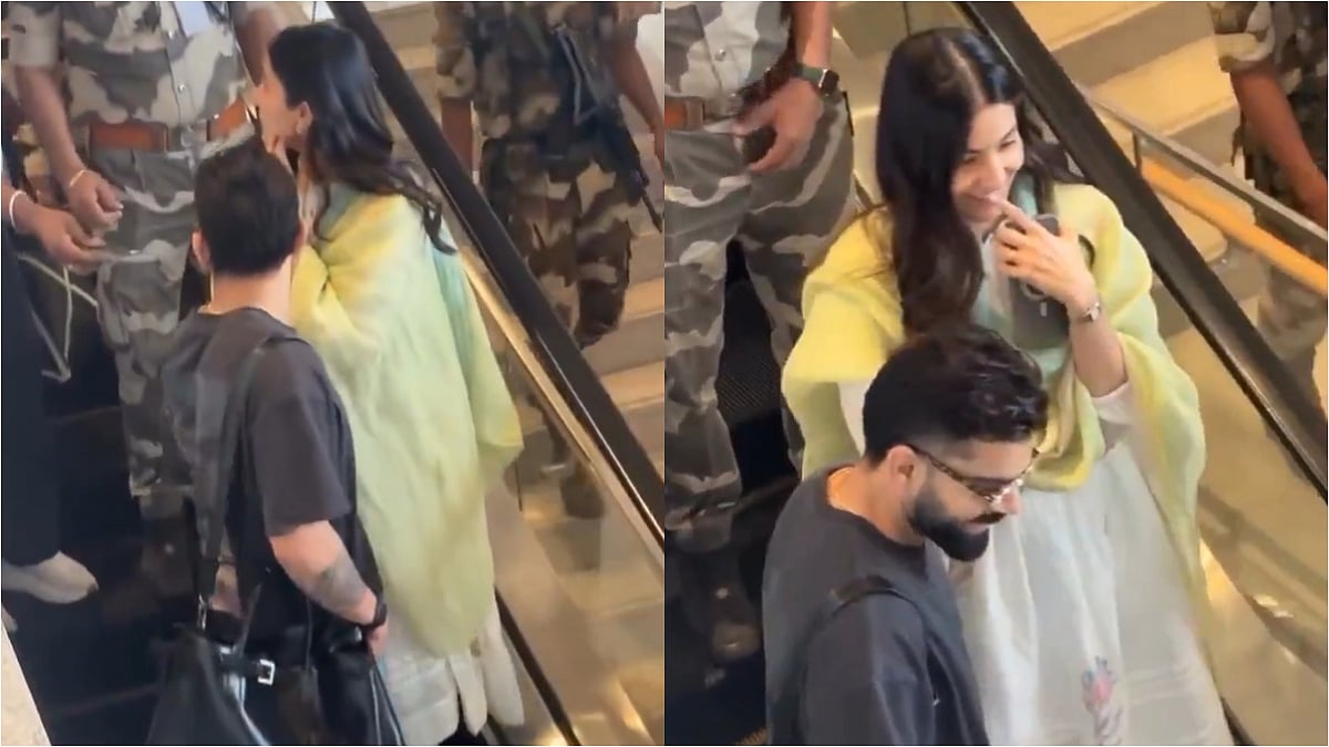 The video shows Virat Kohli and Anushka Sharma at the airport as they head to Delhi. They are seen going down an escalator under tight security.