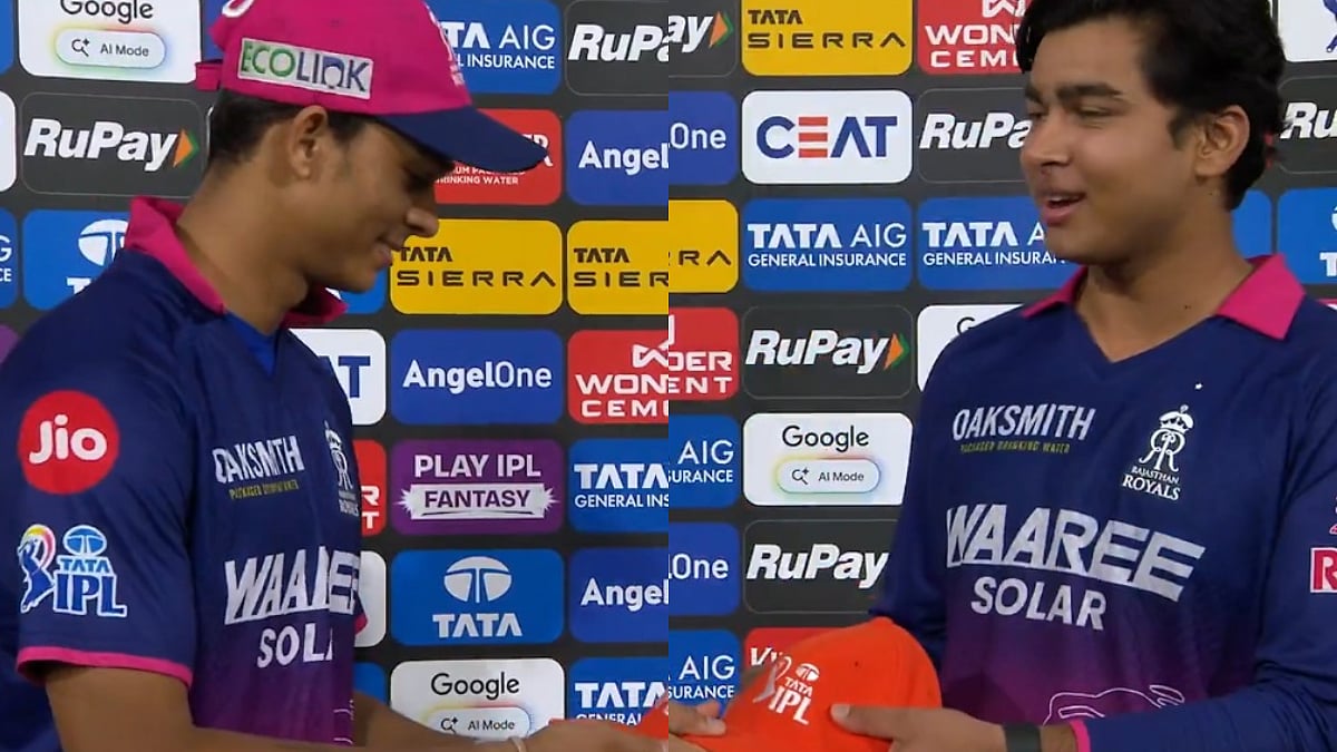 Yashasvi also applauded Vaibhav's intent and style at the crease during the post-match interview. Yashasvi not only handed him the cap, but also helped him wear it and a light-hearted moment occurred on camera. The commentator had to intervene to stop them. The commentator asked Yashasvi to let Vaibhav go and continue with the interview.