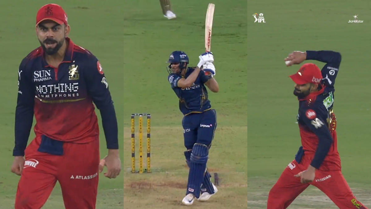 Ahmedabad, April 30: A highly intense moment including Virat Kohli occurred during the Gujarat Titans vs Royal Challengers Bengaluru clash in the Indian Premier League (IPL) 2026 at the Narendra Modi Stadium in Ahmedabad on Thursday. The incident occurred when Gujarat Titans captain Shubman Gill was dismissed off Bhuvneshwar Kumar and the catch was taken by Virat Kohli in the covers region. He smashed the ball on the ground in aggression after taking the spectacular catch.
