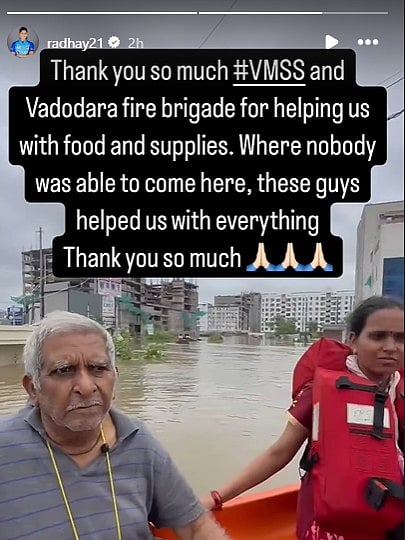The video in her post shows the surrounding areas submerged in water and rescue personnel approaching on a raft. People can also be seen wading through chest-high water. Radha is a member of the 15-member squad for the 2024 Women's T20 World Cup beginning on October 3rd. Indian women's team begin their T20 World Cup campaign against New Zealand on 4th October.