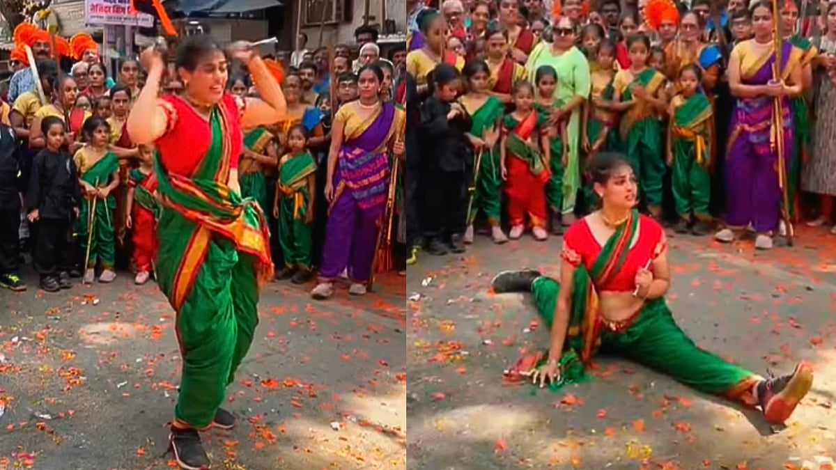 A vibrant moment from this year’s Gudi Padwa celebrations has taken social media by storm. A video featuring a woman skillfully performing with nunchucks while dressed in a traditional sari has gone viral, earning widespread admiration online.