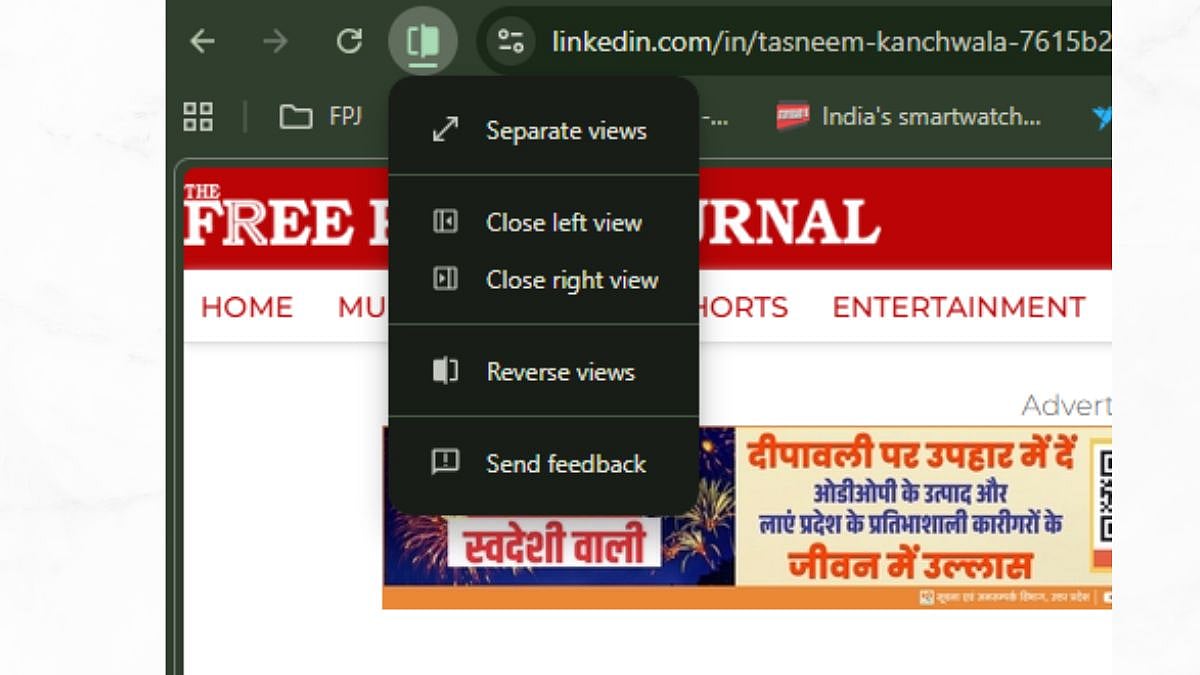 4. Right-click on any open tab (or a new one). Look for New split view with current tab in the menu. It should be right there near the top. Select it, and your window splits, with the current tab on one side and a blank slate (or quick-pick from your other tabs) on the right.