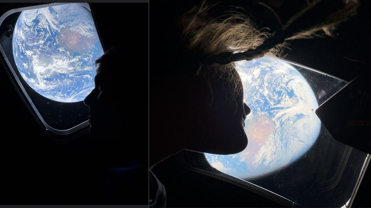 The photos show Artemis II's Commander Reid Wiseman and Mission Specialist Christina Koch looking back at Earth through one of the Orion spacecraft's main cabin windows.