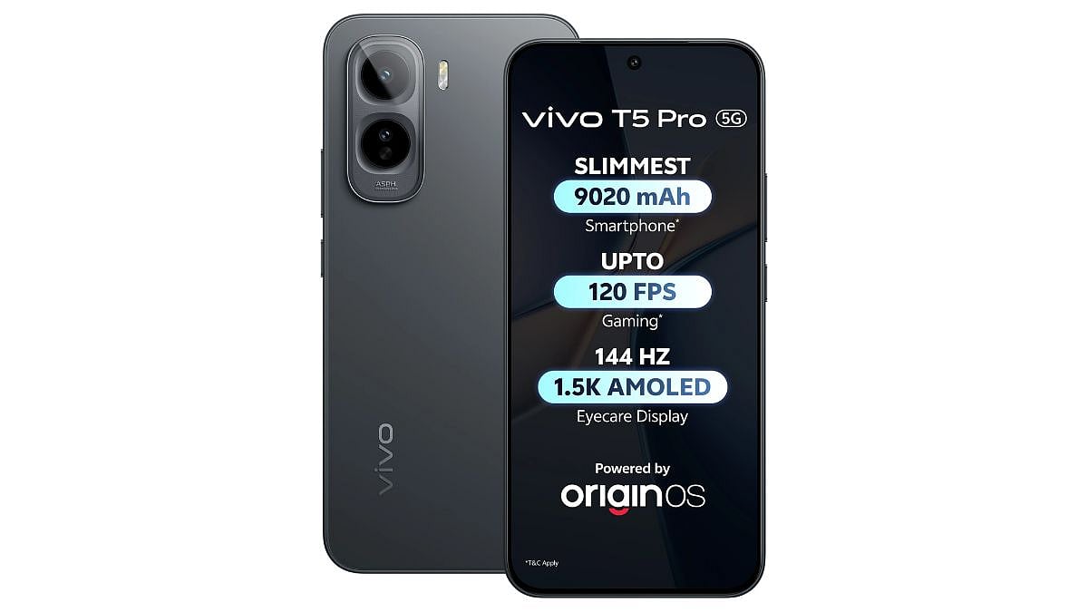 Vivo has launched the T5 Pro 5G as its most battery-focused T-series phone yet. The headline feature is its massive 9,020mAh silicon-carbon battery , housed in a slim 8.25mm body. The Vivo T5 Pro sits alongside other T5 series phones, including the T5x launched recently. The Pro models comes with a 1.5K 144Hz AMOLED display and a Snapdragon 7s Gen 4 chipset.