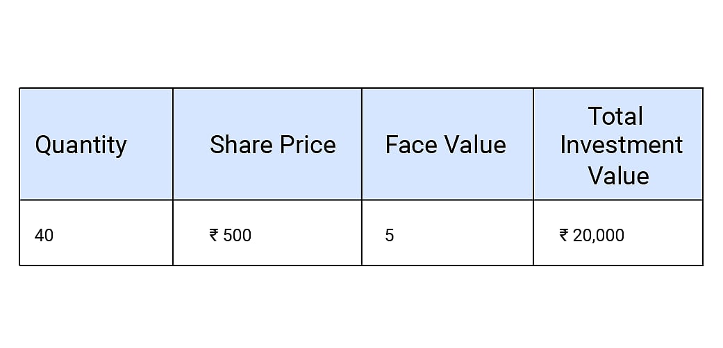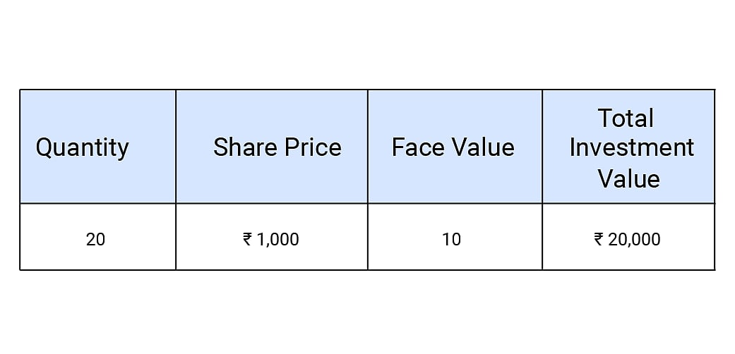 Now, the share splits in the ratio of 2:1. This means that every share you own will be split into two, and the face value will be adjusted accordingly. After the stock split, this is what your portfolio would look like: