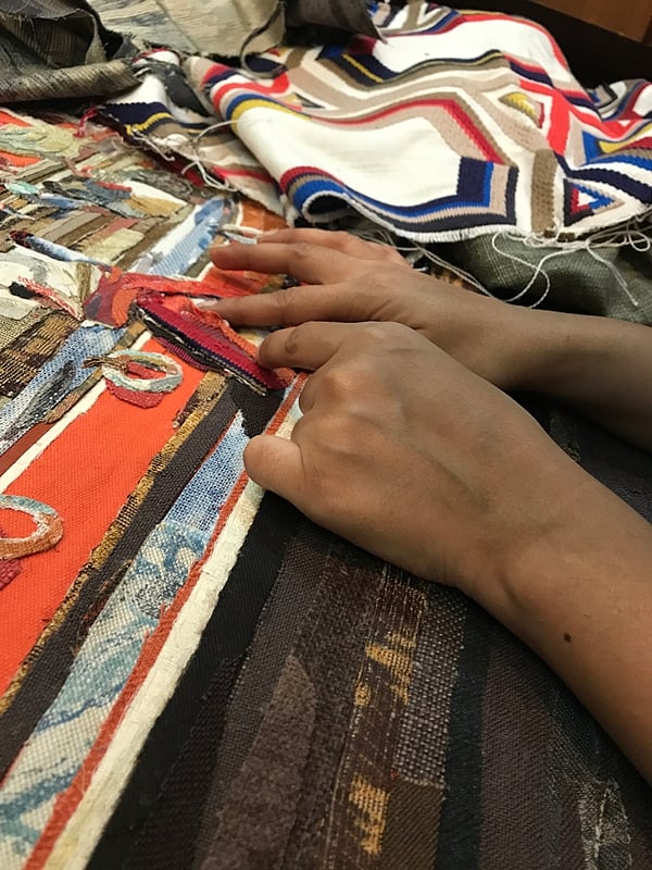 “Getting the right piece to sit next to one another is challenging, as each fabric comes with its own texture, colour and tactility - forming an endless and rich palette. The work gets layered fabric on fabric, relying purely on my instinct,” she explains.