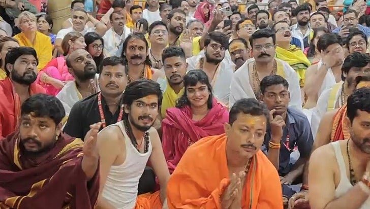 According to the priest of the temple Ashish Sharma, before the Bhasma Aarti, the holy bath of Baba Mahakal with water and Panchamrit Mahabhishek was performed in which the lord was anointed with milk, curd, ghee, honey, and fruit juices. After that Baba Mahakal was decorated with Bhang, and sandalwood, and then put up with clothes. Thereafter, Bhasma Aarti was performed amid beating drums and blowing of Shankh (conch shells).