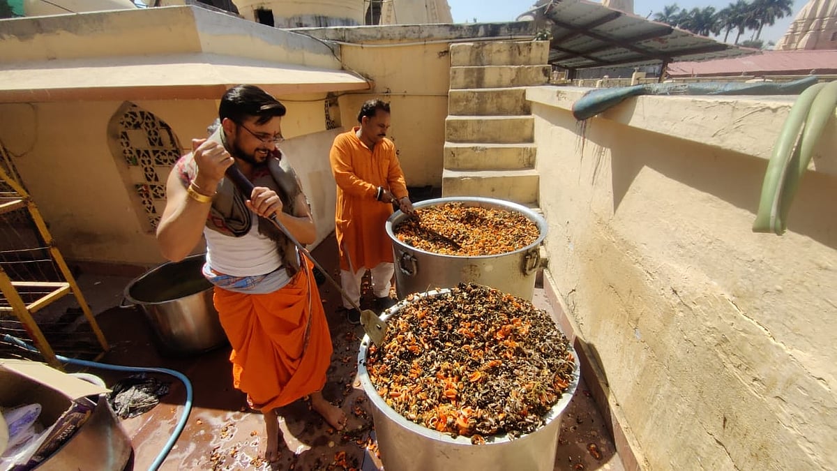 Rajadhiraj Lord Mahakal will celebrate the festival of Panchami with his devotees with pure colours in the early morning Bhasmarti on Rangapanchami in the Mahakal temple. The tradition of offering herbal pure colour to Mahakal on Rang Panchami is years old. The corrosion caused to the Shivling can be saved by chemical-free colour. For this, the process of making colours was started in the Mahakal temple premises on Saturday. This time three quintal Tesu flowers have been brought from different areas. All the flowers are being cleaned and boiled with water in three big pots.