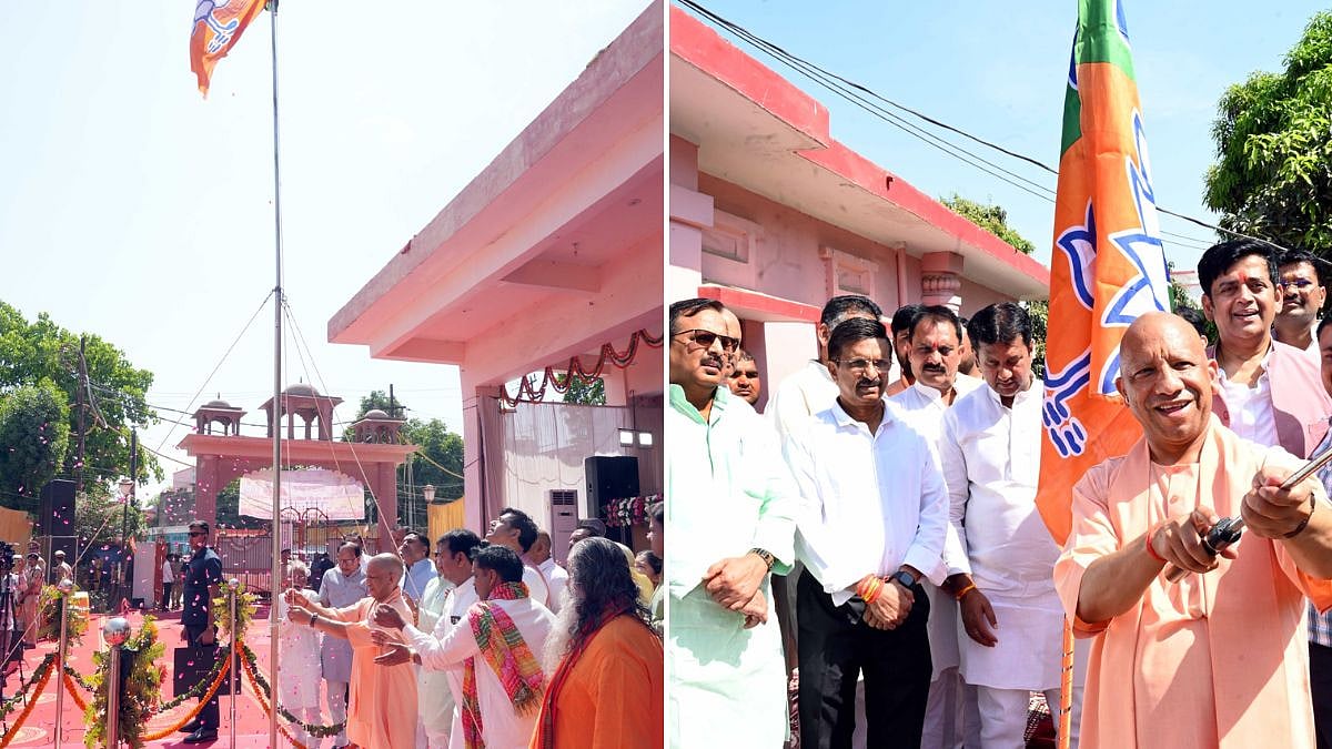 Gorakhpur, April 6: Chief Minister Yogi Adityanath on Monday hoisted the party flag on the roof of the Hindu Sevashram building located within the Gorakhnath Temple premises on the occasion of the foundation day of the Bharatiya Janata Party. On this occasion, he also took a selfie with party office-bearers in front of the flag and extended his greetings and best wishes to all on the foundation day.
