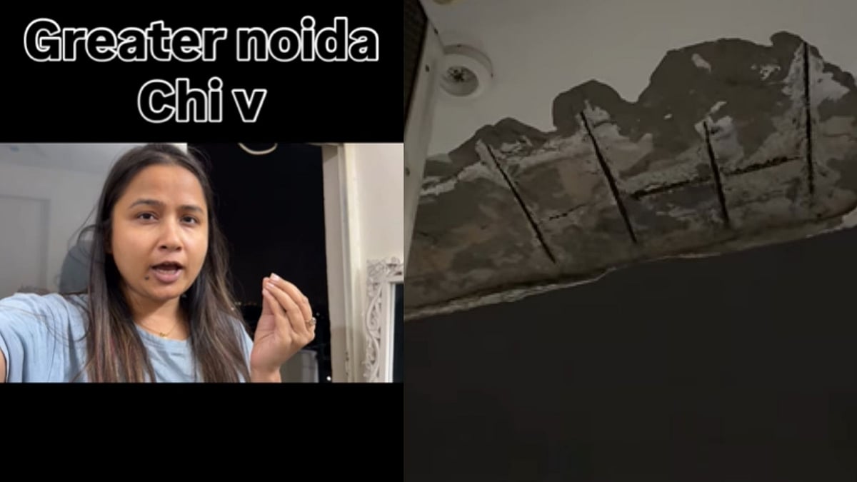 Sonam Singh, a resident of a flat in the Chi 5 area of Greater Noida, documented the aftermath of the incident in an Instagram video. According to her, she was inside her room when she heard a sudden crashing sound in the middle of the night.