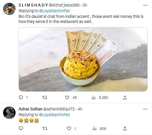 Is that for real some money being served with the delicious cuisine? Foodies have got an answer to clear your doubt and fact-check the case. The food seen in the image is called "Daulat ki Chaat" and happens to be a much-loved recipe in North India. The preparation is especially tried during winter and is made after cooling boiled milk.
