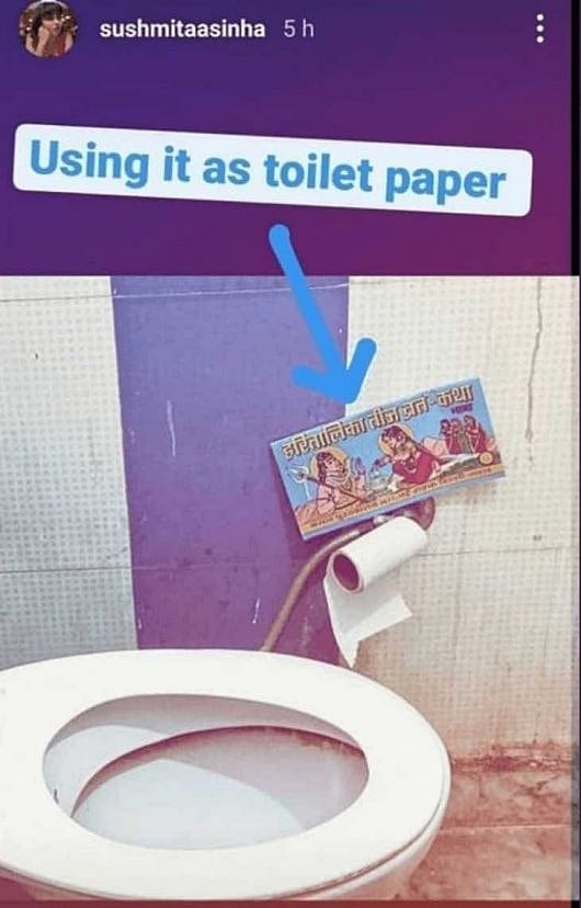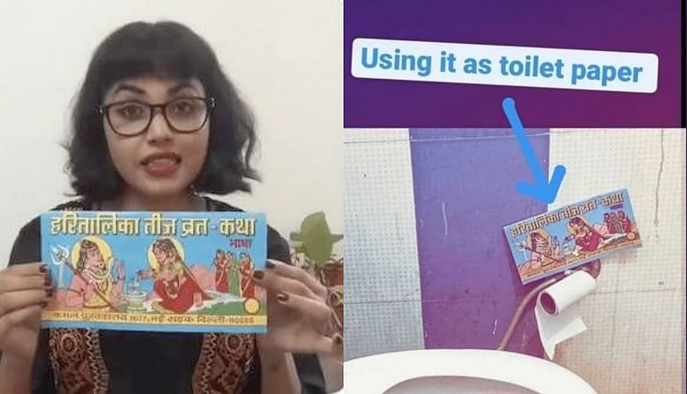 On Wednesday, a video of a woman named Sushmita Sinha went viral on the internet. In the clip, Sinha was seen holding a Hindu scripture, 'Haritalika Teej Vrat Katha', with the picture of Lord Shiva and Goddess Parvati on the cover and asking viewers what do they think about her using the book as a 'toilet paper'.