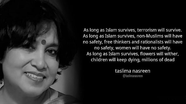 Taking to social media, she claimed, “As long as Islam survives, terrorism will survive...From the womb of Islam, hatred will keep being born, ugly monsters will keep being born”.